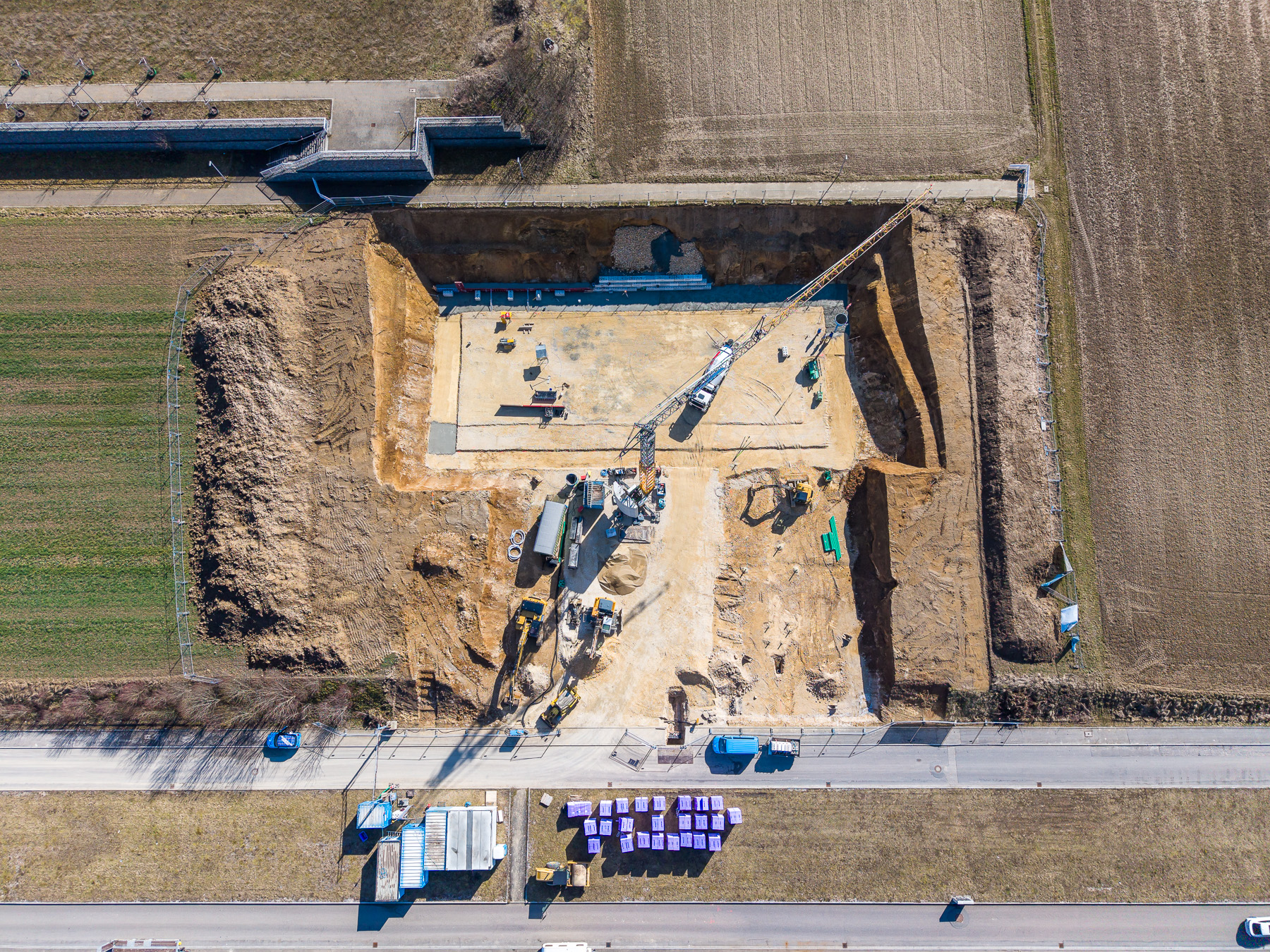 Der Neubau vereint funktionale Produktions- und Lagerflächen mit zeitgemäßen Büro- und Verwaltungsbereichen. Durch die schlüsselfertige Ausführung erhält der Bauherr eine optimal abgestimmte Gesamtlösung aus einer Hand – von der Rohbauausführung bis zur finalen Übergabe des Gebäudes.