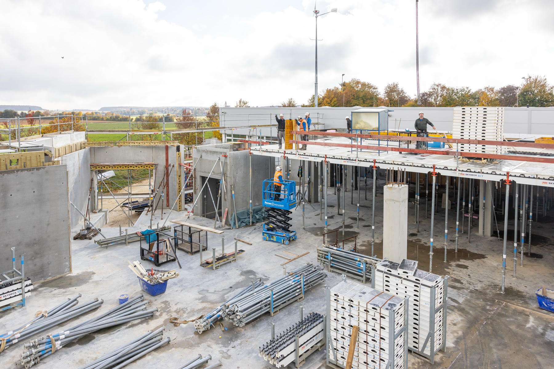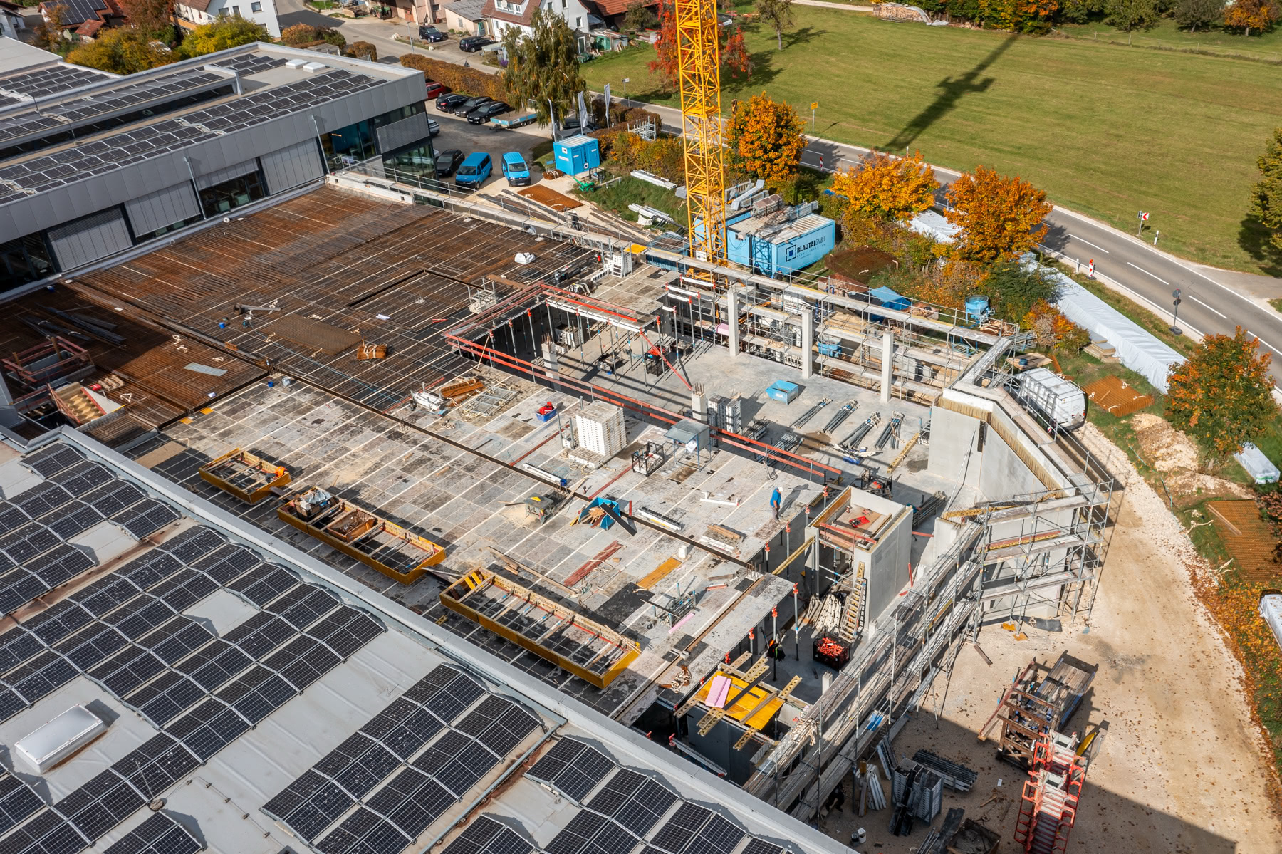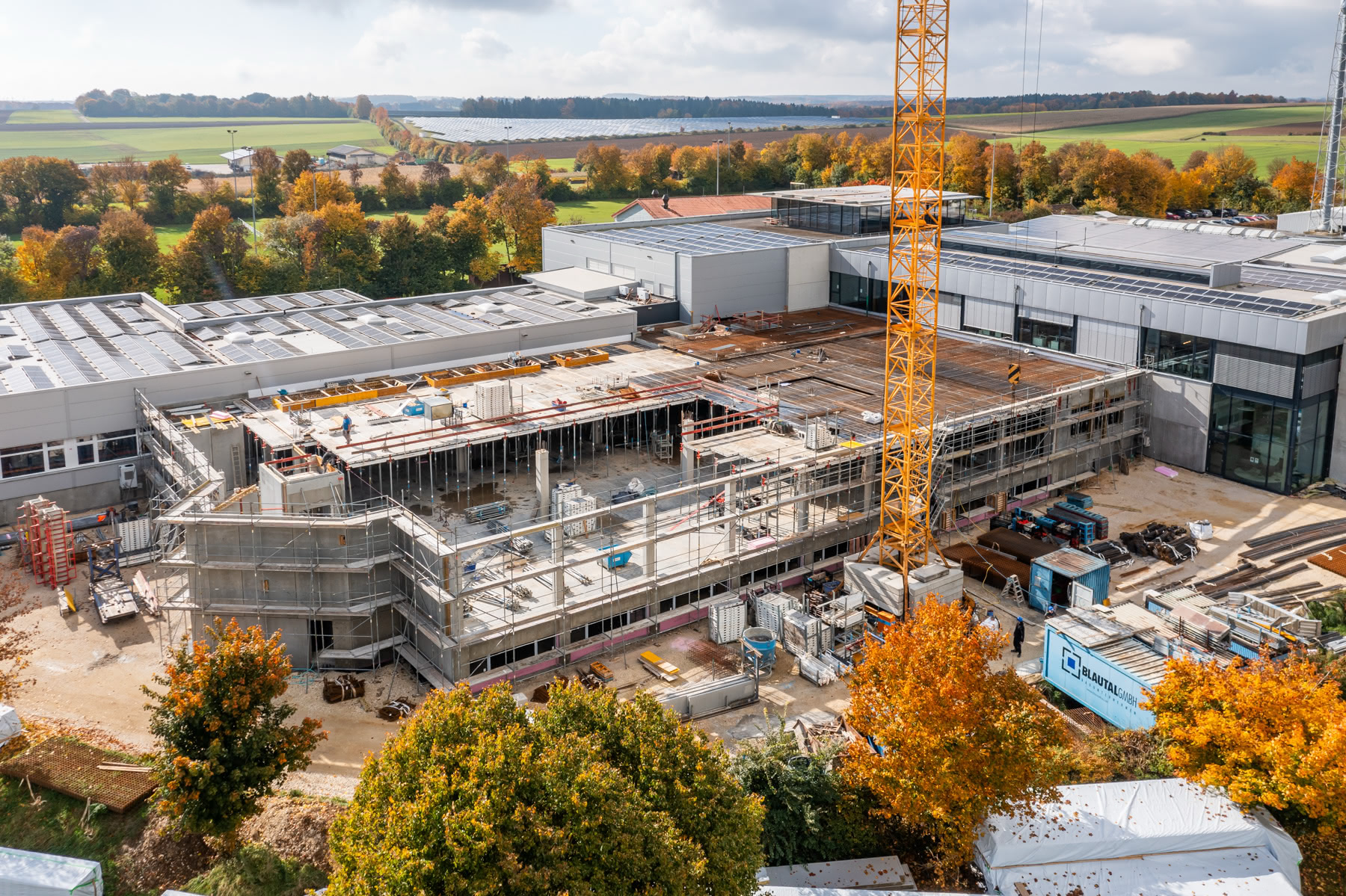 In Ingstetten entsteht bei der Lorenz GmbH & Co. KG ein Erweiterungsbau des Produktions- und Bürogebäudes mit ca. 4.500 m² Nutzfläche. Wir bauen mit Hohl- und Thermohohlwänden und Ortbeton-Bodenplatte und -decken. Zusätzlich entstehen zwei Windradfundamente!